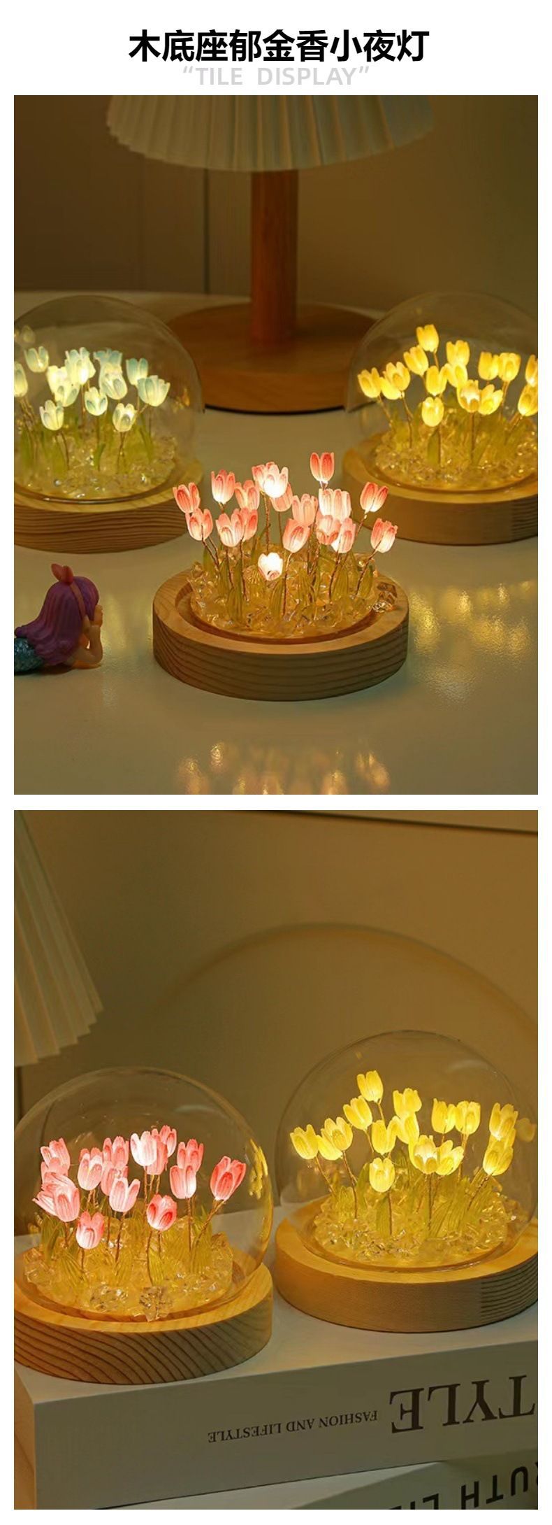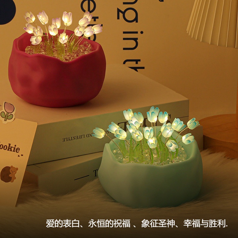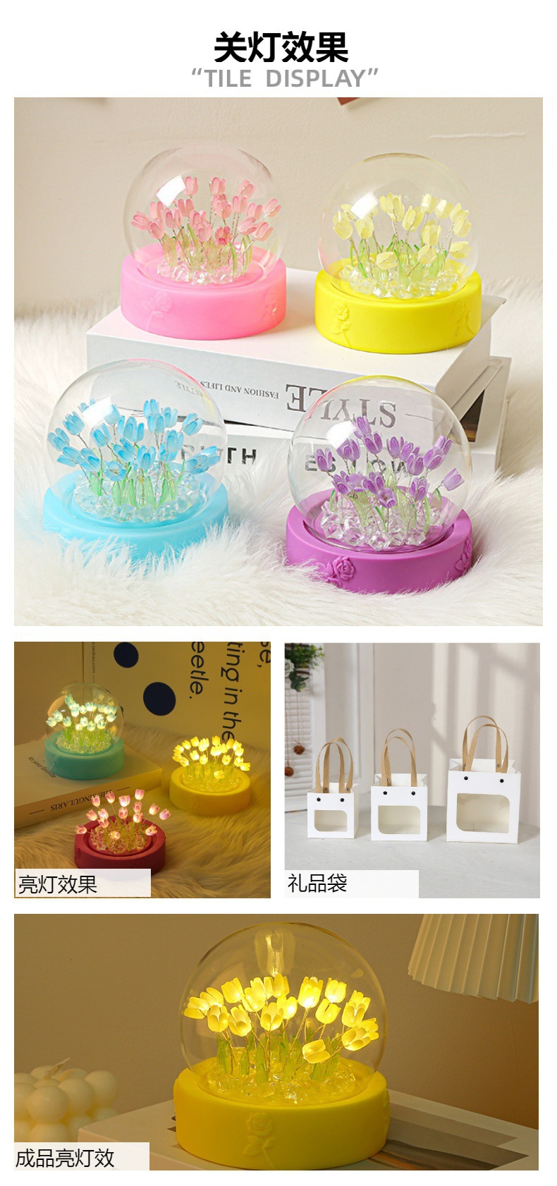 Tulip Night Light – Handmade LED Flower Sleep Lamp with Mirror Design – Romantic Bedroom & Gift Decor