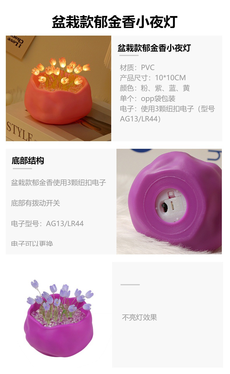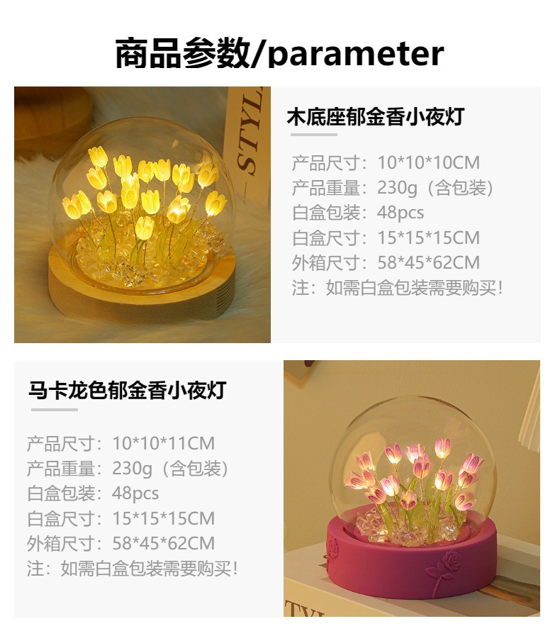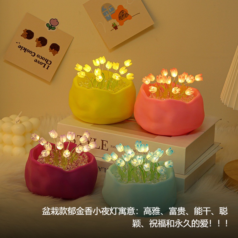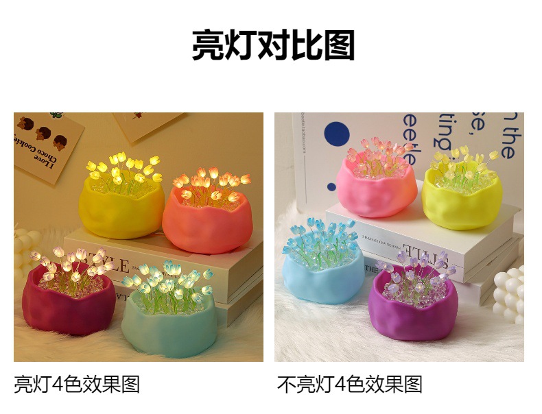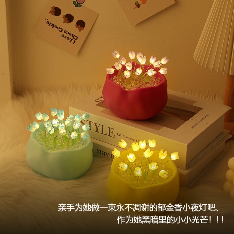 Tulip Night Light – Handmade LED Flower Sleep Lamp with Mirror Design – Romantic Bedroom & Gift Decor