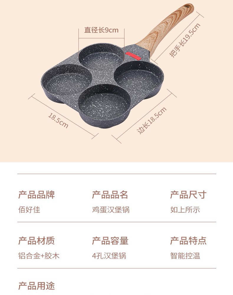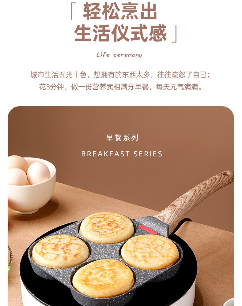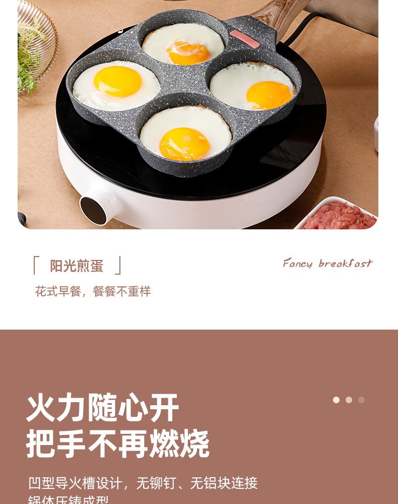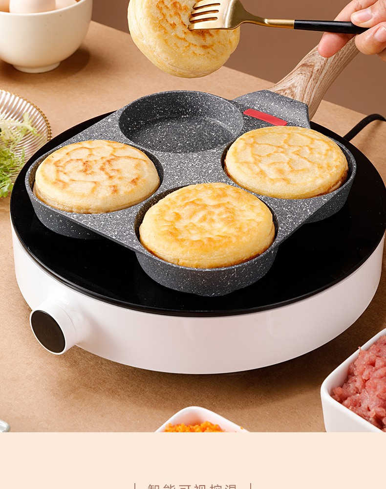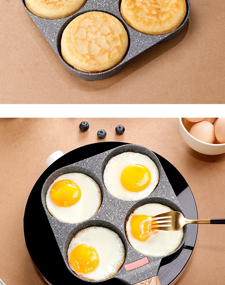 Non-Stick 3-in-1 Medical Stone Four-Hole Omelette Pan – Multi-Section Breakfast Frying Pan