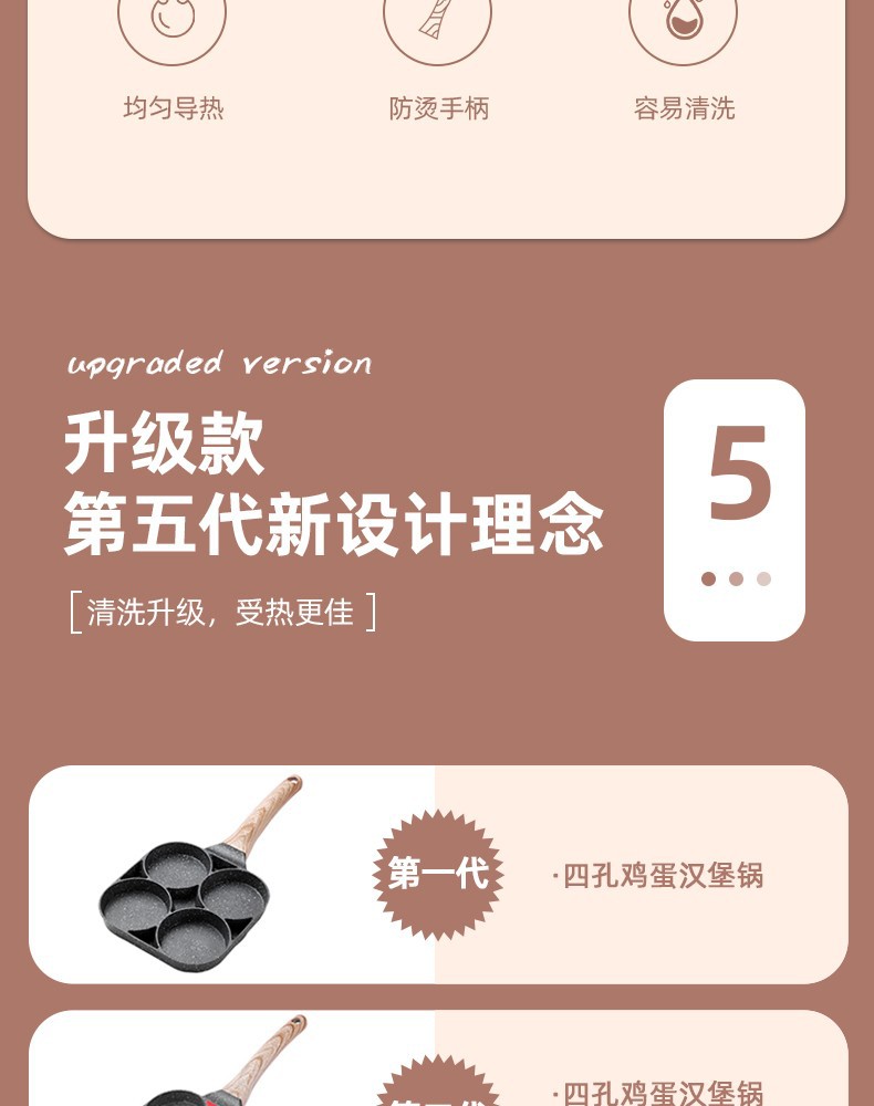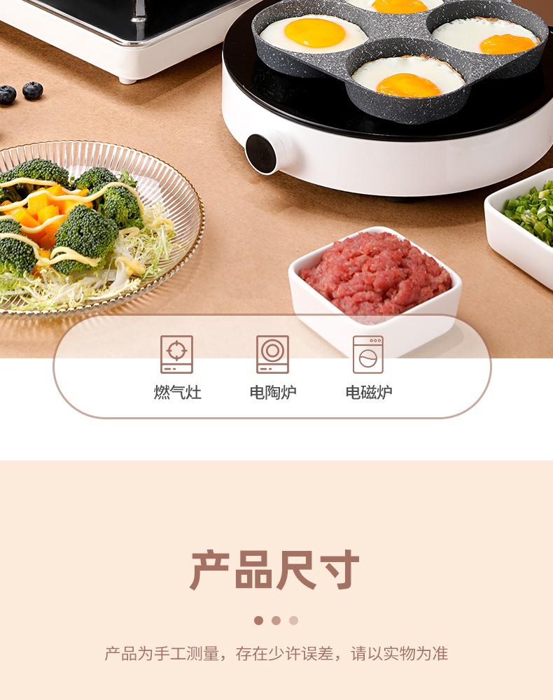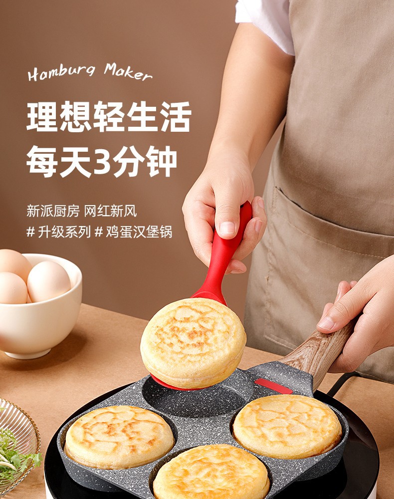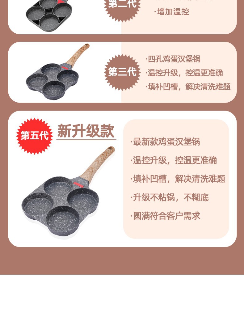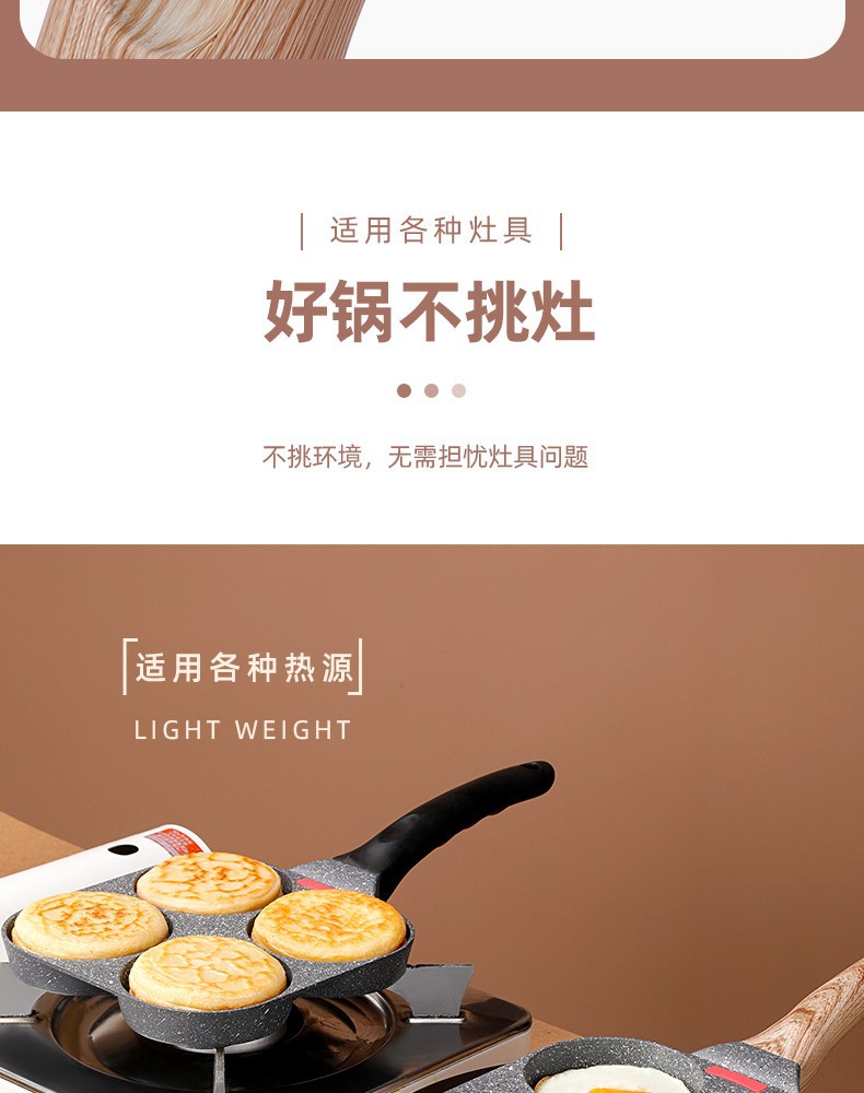 Non-Stick 3-in-1 Medical Stone Four-Hole Omelette Pan – Multi-Section Breakfast Frying Pan