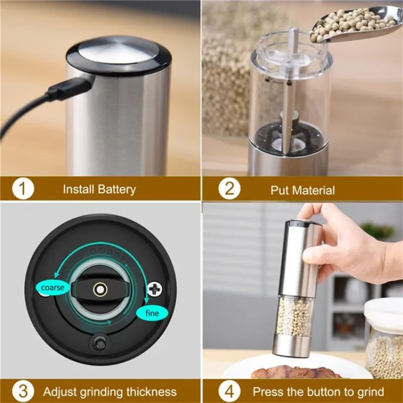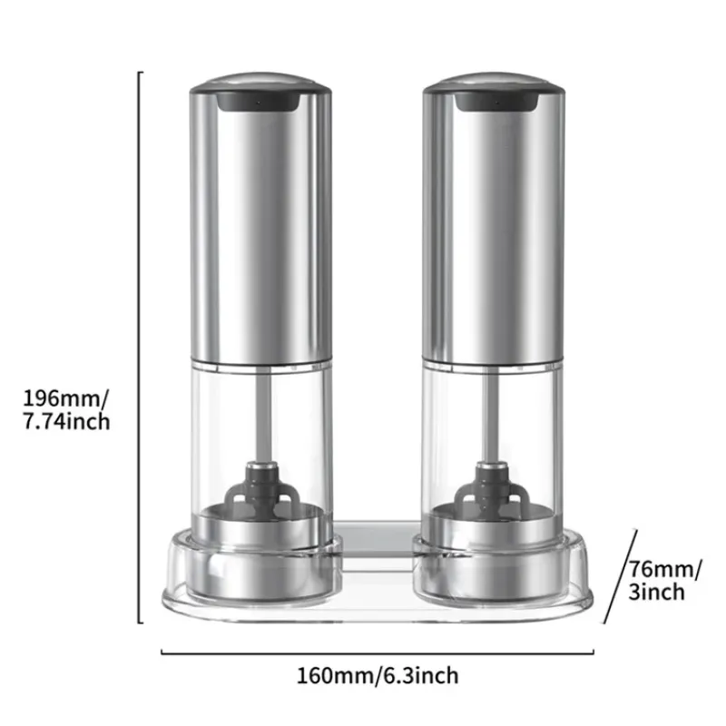 KLT KYMQ-37A-H-BS 2Pcs Rechargeable Electric Pepper Grinder Kitchen Tool (BPA Free, No FDA Certification)