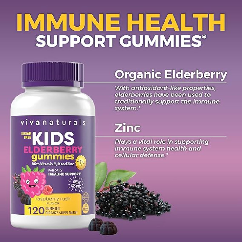 Sambucus Elderberry Gummies for Kids – Sugar-Free Immune Support with Vitamin C & Zinc (120 Count)
