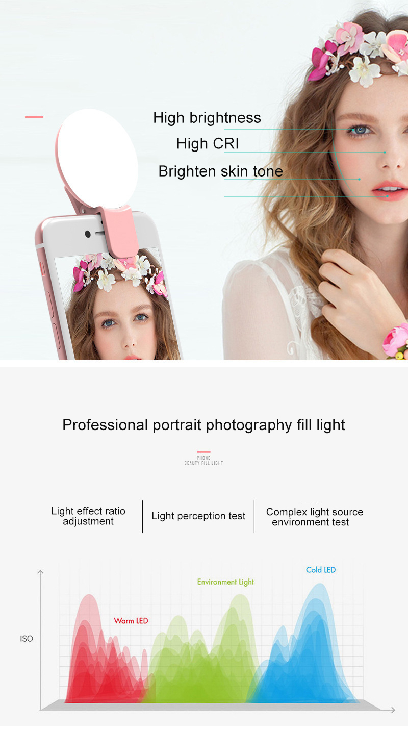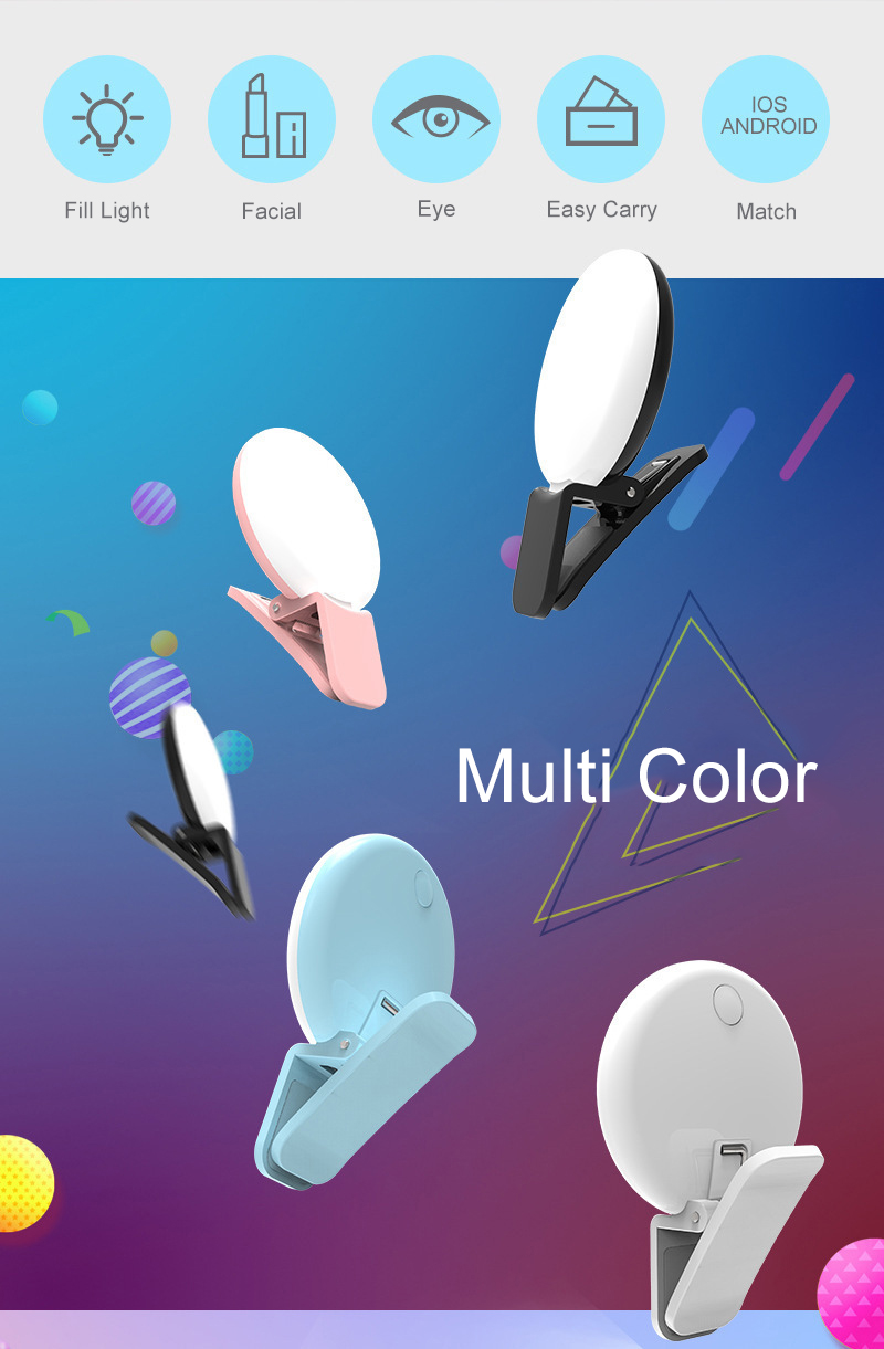 Mini Q Mobile USB Charging Clip-On Selfie Ring Light – Dimmable Fill Light for Makeup & Selfies